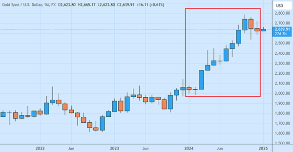 Investasi Online • 4th January 2025 Prediksi Harga Emas Naik Tahun 2025 Berkat Faktor Ini Goldman Sachs dan JP Morgan kompak memperkirakan harga emas naik sampai kisaran $3000.